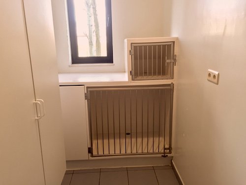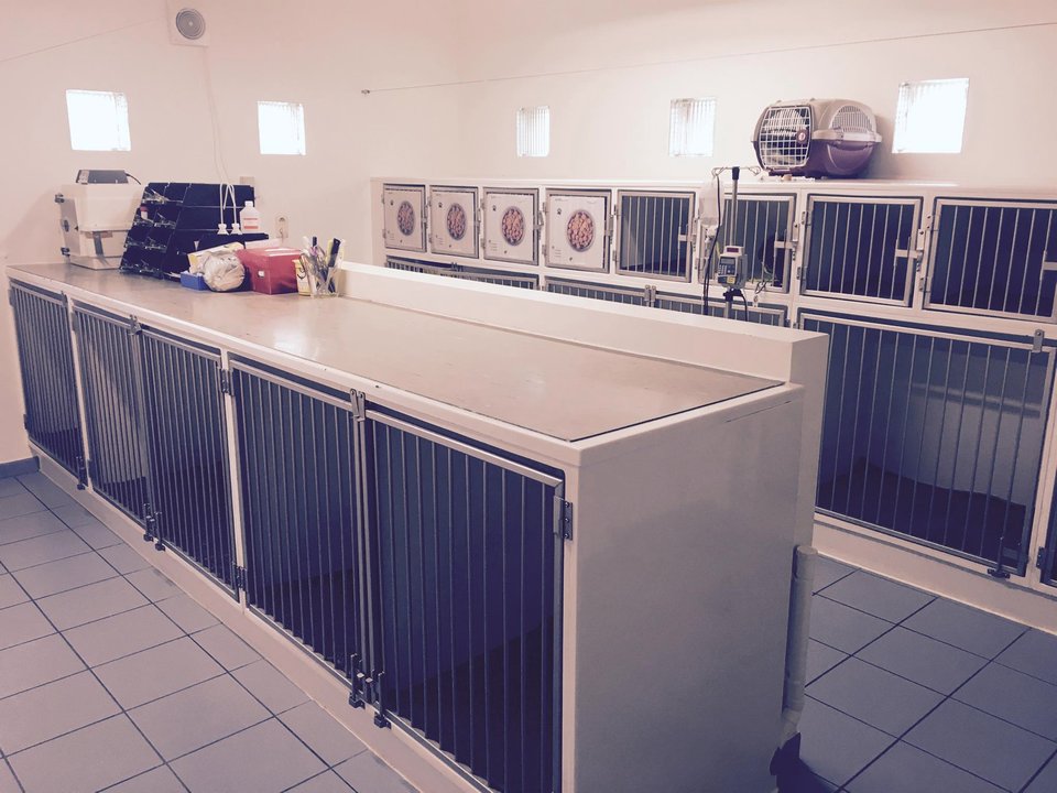 onze hospitalisatieruimte met moduleerbare hokken, aangepast voor zowel hond, kat als konijn