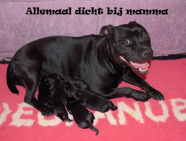 Het resultaat na de bevalling: een fiere mama met haar pups!